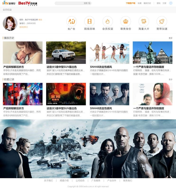 用户信息:包括用户基本信息,包括用户名、相关权益、会员积分、播放历史、收藏内记录等。